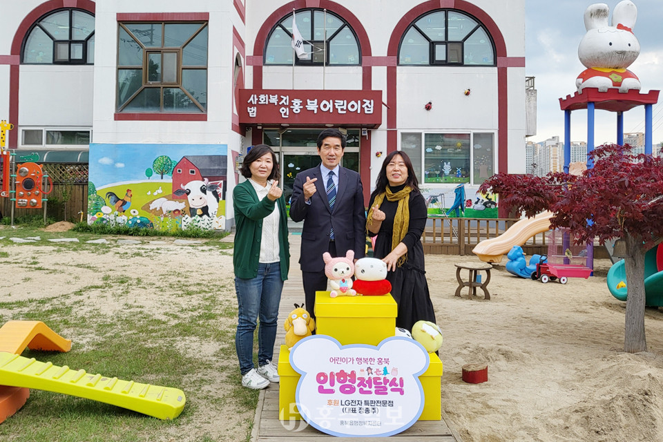 홍북읍(읍장 복성진)은 지난 3일 ‘제101회 어린이날’을 맞이해 LG전자 특판전문점(대표 정종주)가 어린이들에게 작은 행복이라도 선물하고자 홍북읍에 기탁한 인형 40여 개를 관내 어린이집에 전달했다.<사진>