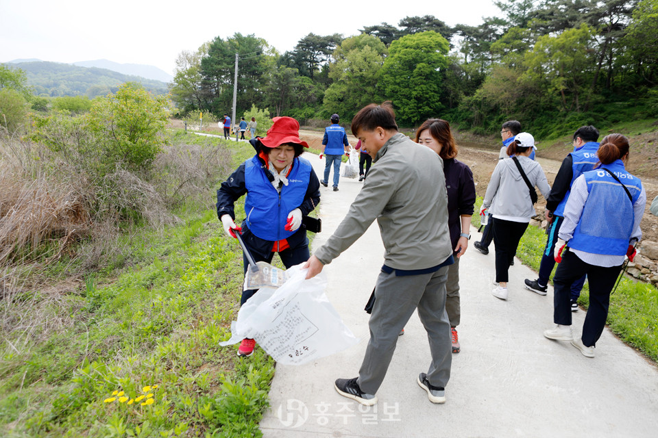 홍성농업협동조합(조합장 박문수)은 지난 1일 근로자의 날을 기념해 임직원 100여 명이 참석한 가운데 홍양저수지 일대를 플로깅하면서 쓰레기를 수거했다.<사진>