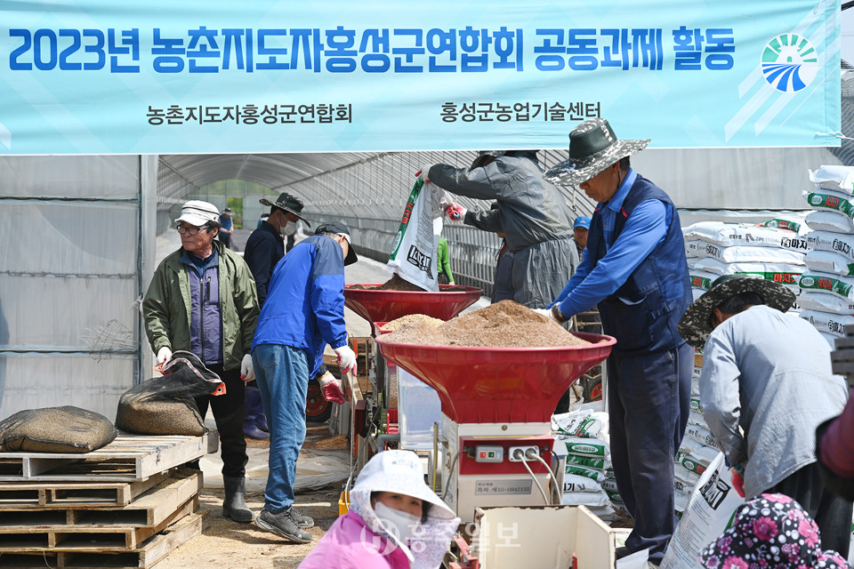 농촌지도자 홍성군연합회(회장 박성희)가 지난달 27일 지역 내 모판 공급을 위한 벼 육묘 공동과제포 파종을 실시했다. 이날 공동 과제 활동에는 14개 읍면(품목)별 농촌지도자회, 군 연합회 임원 등 80여 명이 참여해 모판 1만 2000장 파종작업을 마무리했다.