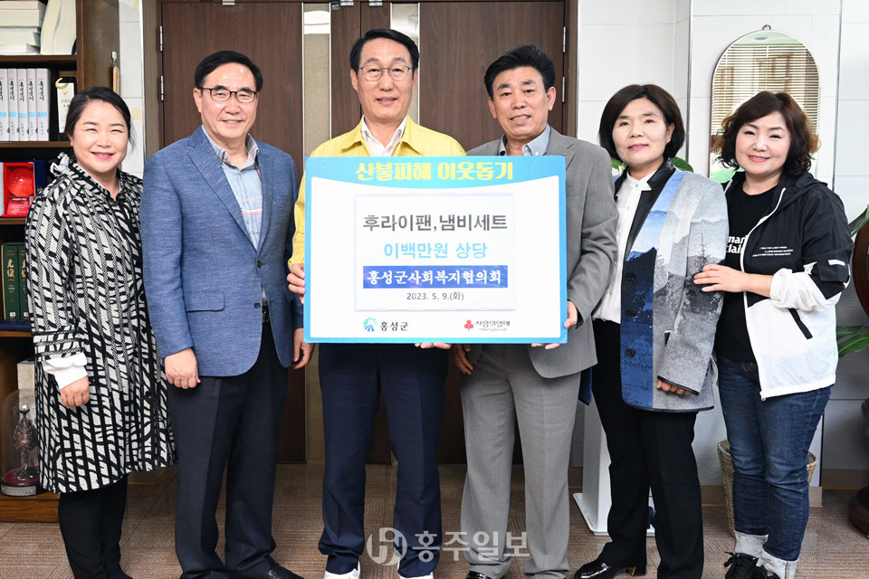 홍성군사회복지협의회(회장 김영만)는 지난 9일 홍성군청을 찾아 지난달 발생했던 홍성 산불로 인해 피해를 입은 이웃을 돕기 위해 사용해달라며 200만 원 상당의 프라이팬·냄비 세트을 이용록 군수에게 전달했다.