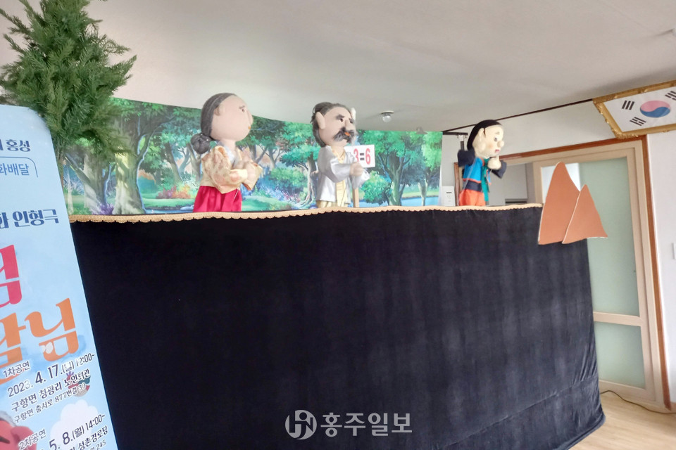 홍성문화도시센터의 ‘2023년 찾아가는 문화배달’ 지원사업에 선정된 생태학교 꿈 인형극단(단장 이희자)의 추억의 전래동화 인형극 ‘햇님 달님’ 공연이 지난 8일 갈산면 동성리 성촌경로당에서 마을주민 30여 명을 대상으로 펼쳐졌다.<사진>