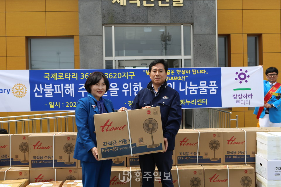 김재철 서부면장은 “산불 피해로 허탈한 마음을 느꼈을 주민들에게 따뜻한 나눔을 실천해 주신 국제로타리 3680지구·3620지구 총재님을 비롯한 관계자분들께 감사드린다”고 말했다.