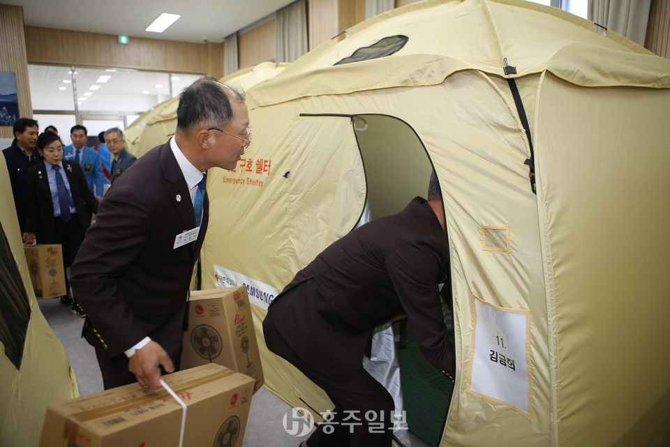 이종림·이서영 총재는 “예기치 못한 대형산불로 인해 임시대비소 생활을 하고 있는 이재민들께 따뜻한 마음이 전달되길 바란다”며 “적절한 보상과 함께 하루빨리 일상으로 회복하길 간절히 바란다”고 격려했다.