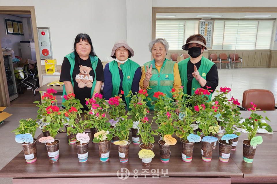 (사)홍성군자원봉사센터(센터장 방은희)는 어버이날을 맞아 지난 4일 자원봉사자들과 함께 제작한 제라늄 꽃 화분 200개를 지역의 어르신들께 전달하며 안부를 묻는 ‘오래오래 건강하세효(孝)’ 프로그램을 진행했다.