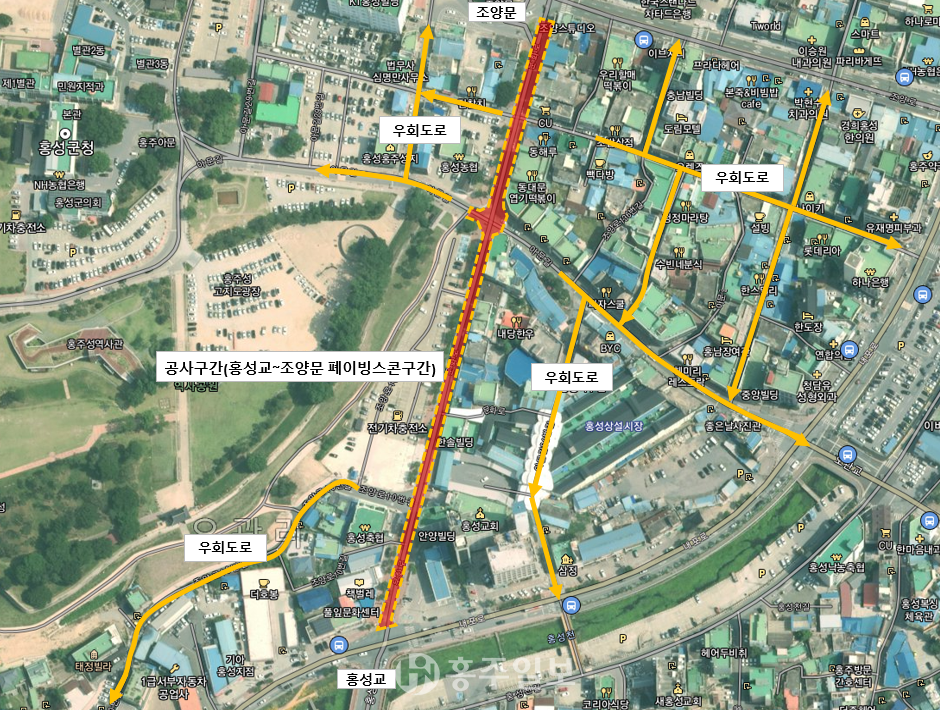 홍성군은 페이빙스톤(사고석) 도로에 통행 불편과 소음발생 원인을 해결하기 위해 오는 19일부터 21일까지 홍성교~조양문 구간의 교통을 전면 통제한다고 밝혔다.