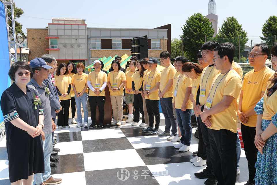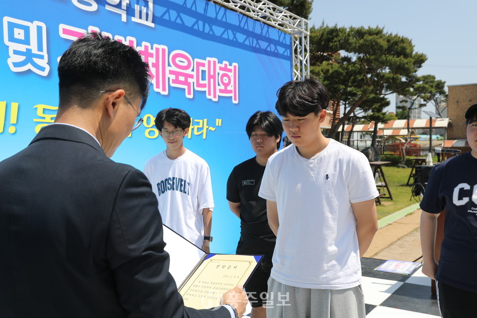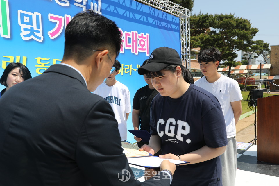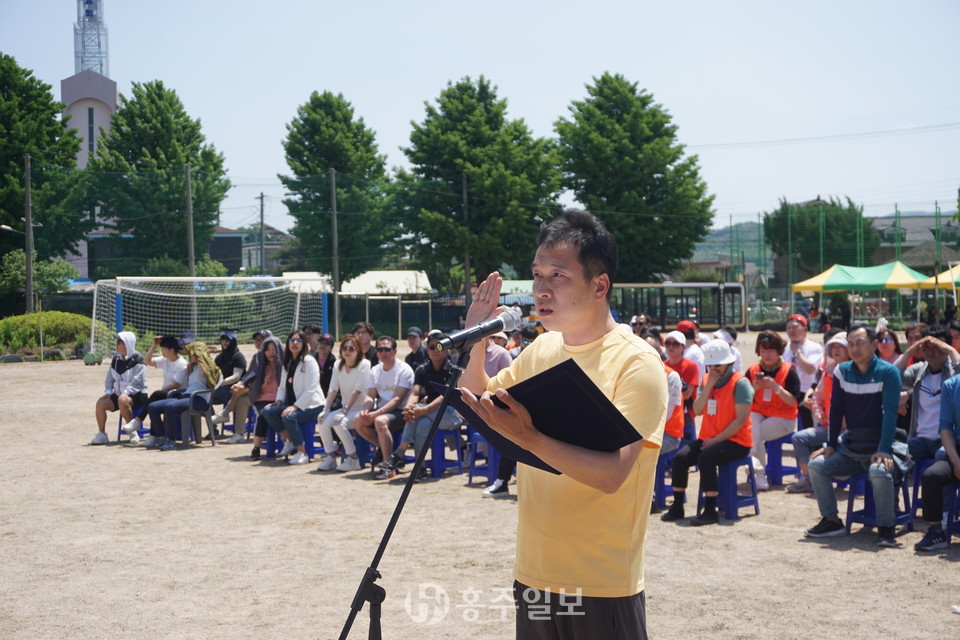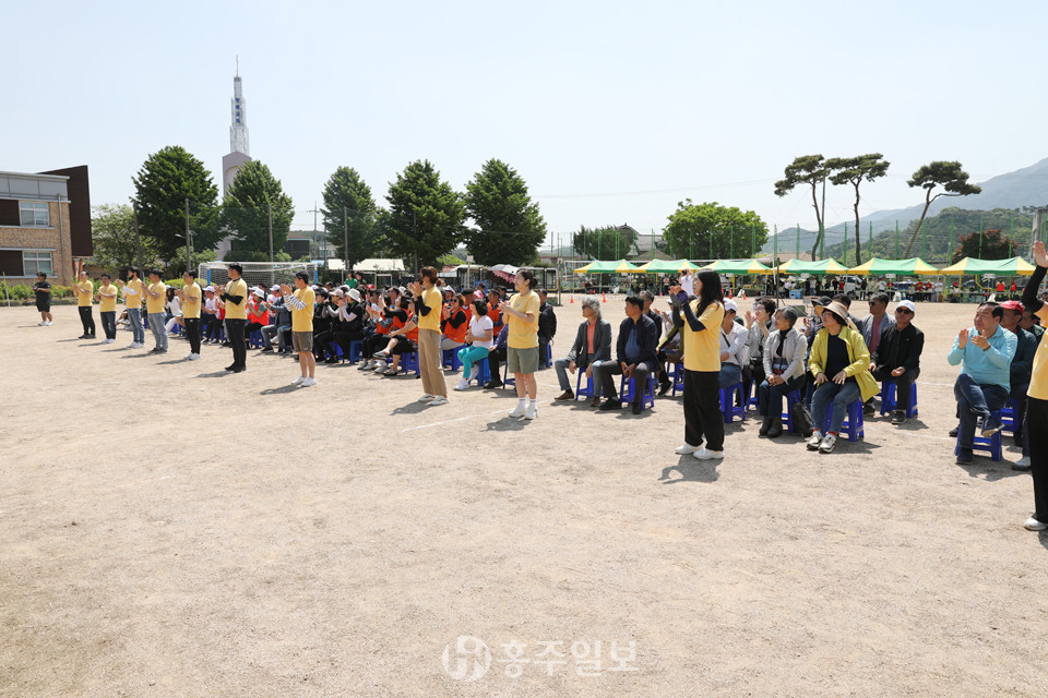 홍성 결성농요보존회의 식전공연으로 시작된 이날 행사는 △내빈소개 △개회선언 △국민의례 △장학금 수여 △발전기금 전달 △은사님 선물증정 △대회사 △격려사 △환영사 △선수대표 선서 △드론 시연 △체육행사 △장기자랑 순으로 진행됐다.