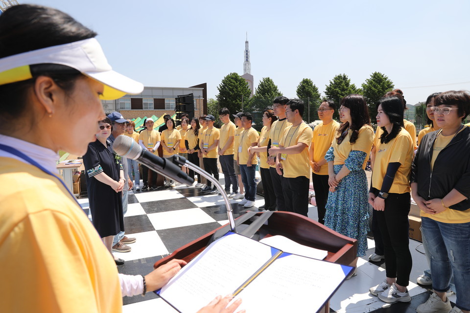 이성원 대회장은 대회사를 통해 “코로나19로 인해 4년 만에 열린 제40차 기별체육대회를 개최하게 돼 무한한 영광으로 생각한다”면서 “화합의 자리를 만들기 위해 물심양면 도움주신 김경환 총동창회장님과 김주호 장학재단 이사장님을 비롯한 관계자 분들께 감사드린다”고 말했다.
