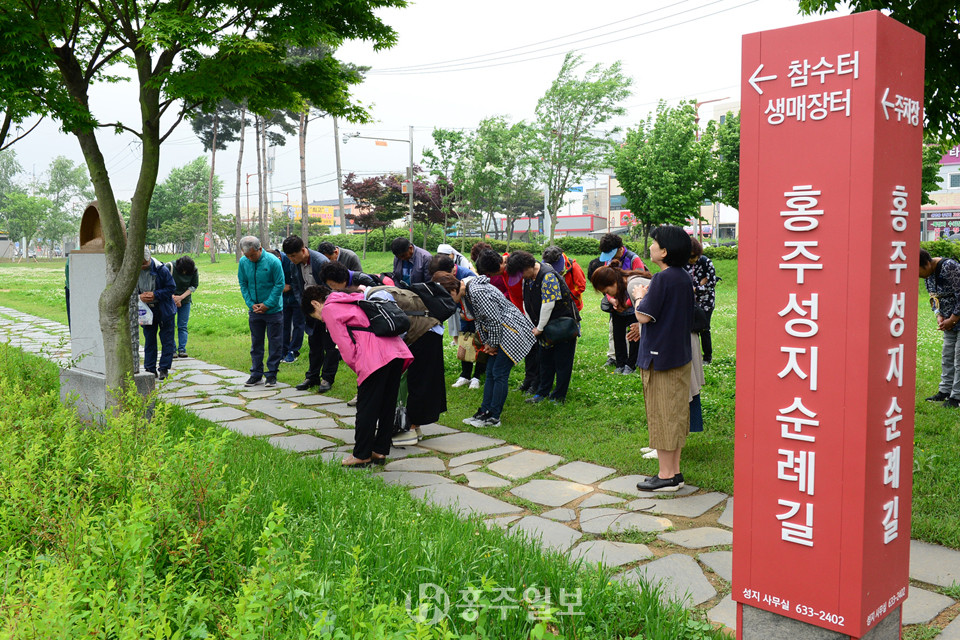 이번 주말 홍성을 찾은 500여 명의 홍주성지 순례객들은 군청 잔디광장과 홍주옥, 홍화문에서 미사를 진행하고, 홍주목사 동헌, 옥사터, 홍주진영, 저잣거리, 참수터, 생매장터 등 순교 성지 6곳을 차례로 순례했다.