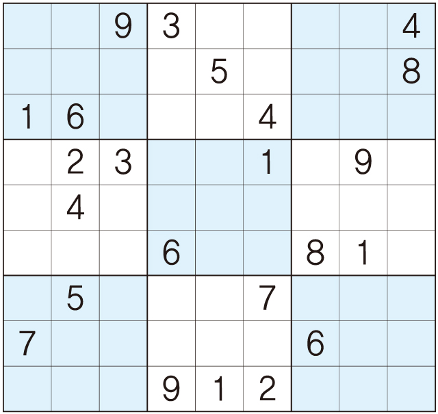 3. 큰 정사각형(9x9) 안에 있는 작은 정사각형(3x3) 안에는 숫자 1~9가 각 한 번씩 들어간다.