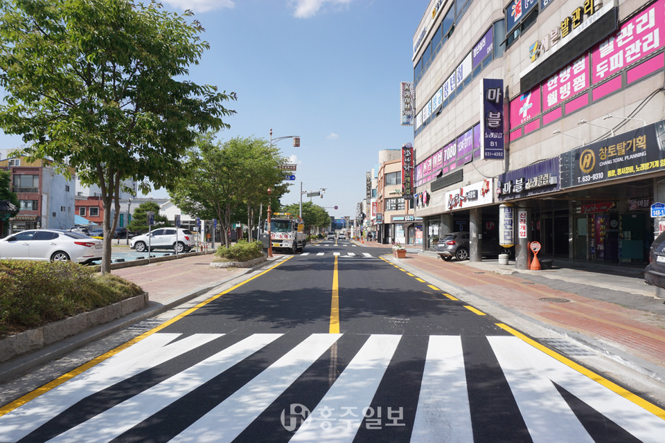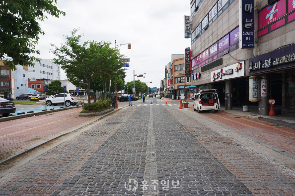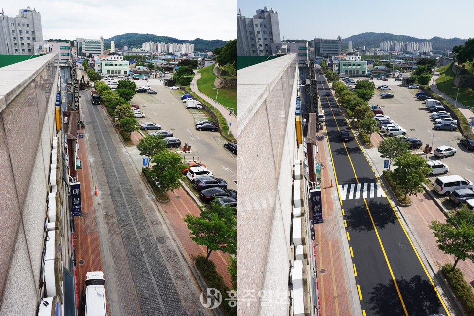 본지 제697호(2021년 7월 15일자 3면) “노후된 돌 포장도로, 안전 위협 ‘애물단지’”, 제768호(2022년 12월 15일자 1면) “‘울퉁불퉁’ 역사문화거리 천연석재 포장도로 철거” 제하의 기사 등을 통해 보도된 홍성읍 홍성교~조양문 구간 페이빙스톤(사고석) 도로가 18년 만에 없어졌다.