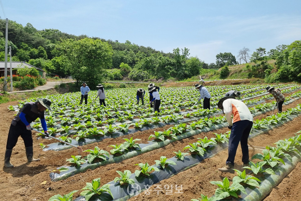 이날 은하면 직원들은 일손이 부족한 농가를 찾아 담배밭 고랑 평탄화하는 작업 등 농가의 시름을 해소하는데 크게 기여했다.