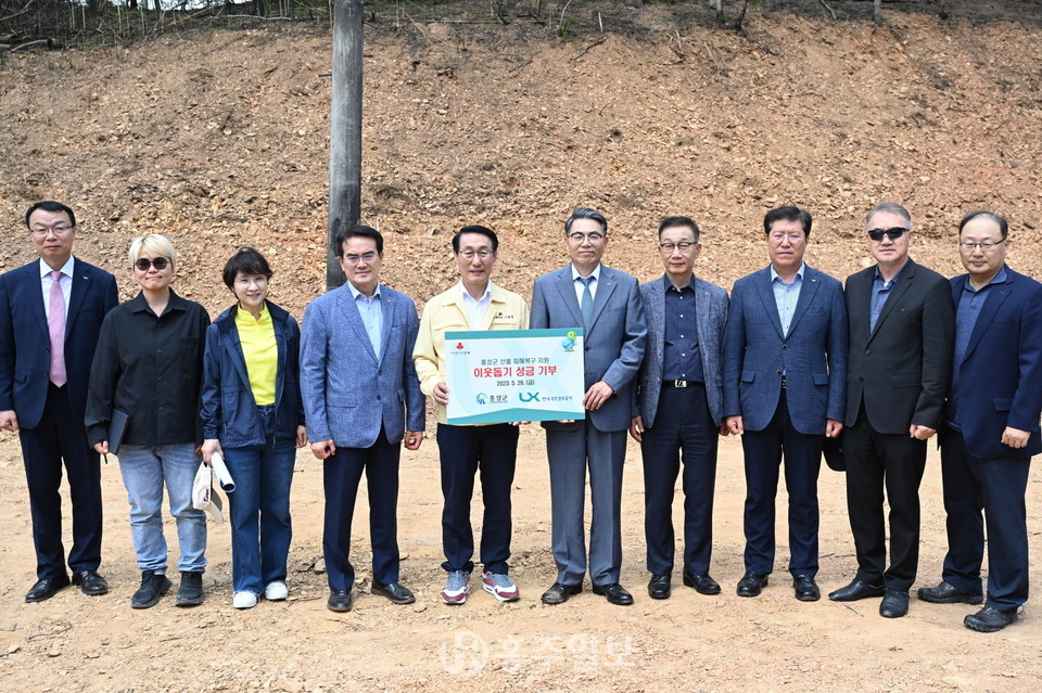 LX한국국토정보공사(사장 김정렬)는 지난 26일에 최근 발생한 서부면 산불피해 현장을 둘러보고 산불 피해복구 지원 성금 1000만 원을 기탁했다.<사진>
