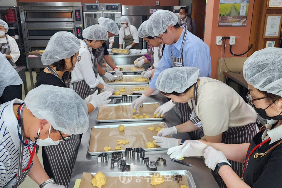 홍성DMO사업 사례 발표를 끝내고, 2021년 로컬체험전문가 ‘머물러’ 양성과정을 통해 더욱 발전된 ‘유기농 쌀로 만든 쌀빵 체험’을 하며 문당환경농업마을에서 생산되는 유기농 쌀을 이용해 빵과 쿠키를 만드는 체험을 진행했다.