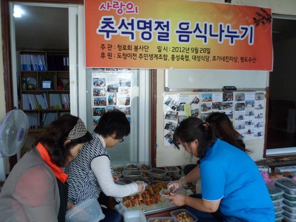 청로회(회장 이철이)는 지난달 28일 홀로 명절을 보내야 하는 읍내 독거노인 30명을 위해 ‘사랑의 명절음식’을 전달했다. 도청이전 주민생계조합, 홍성축협, 대성식당, 조가네진지상, 형도수산의 후원을 받아 청로회 어머니 자원봉사자들이 직접 전과 나물을 만들고 떡, 술, 과일, 소고기 등 10여 가지의 제사 음식을 정성껏 마련했다.