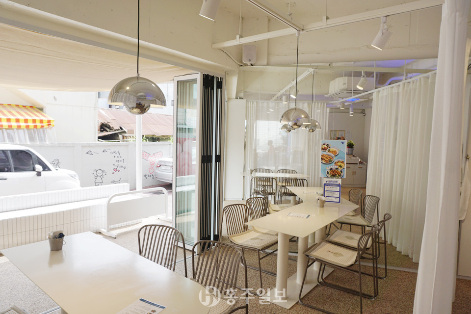 “처음 시작하는 사업이지만 최대한 어설프게 보이지 않으려고 노력했어요. 동생이 디자이너여서 메뉴판과 포스터 디자인을 도와주기도 했고요. 테이블과 의자, 접시 하나까지 손수 골라 전체적인 조화를 이루려 했습니다.”
