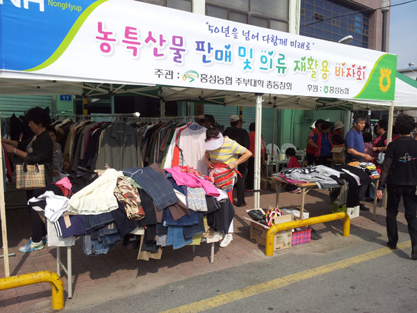홍성농협(조합장 정해명) 총동창회(회장 박영실)는 지난달 21일 450여 회원이 참여한 가운데 농협 본점 지역문화복지센터 앞에서 이웃사랑 나라사랑 재활용 바자회를 개최했다