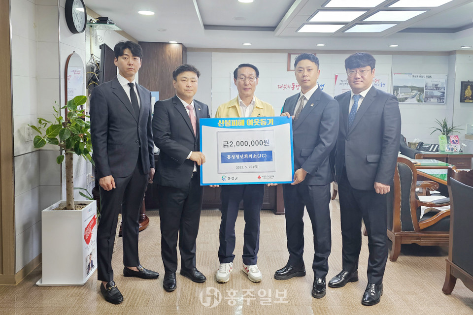 홍성청년회의소(회장 황규범)는 지난달 26일 홍성군청을 방문해 이용록 군수에게 지난 4월 서부면 일대에서 발생한 홍성 산불로 인해 삶의 터전을 잃은 총 53세대 이재민들의 빠른 일상 복귀를 위해 사용해달라며 성금 200만 원을 전달했다.