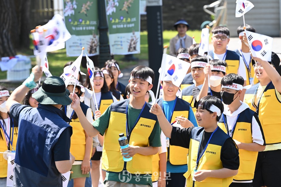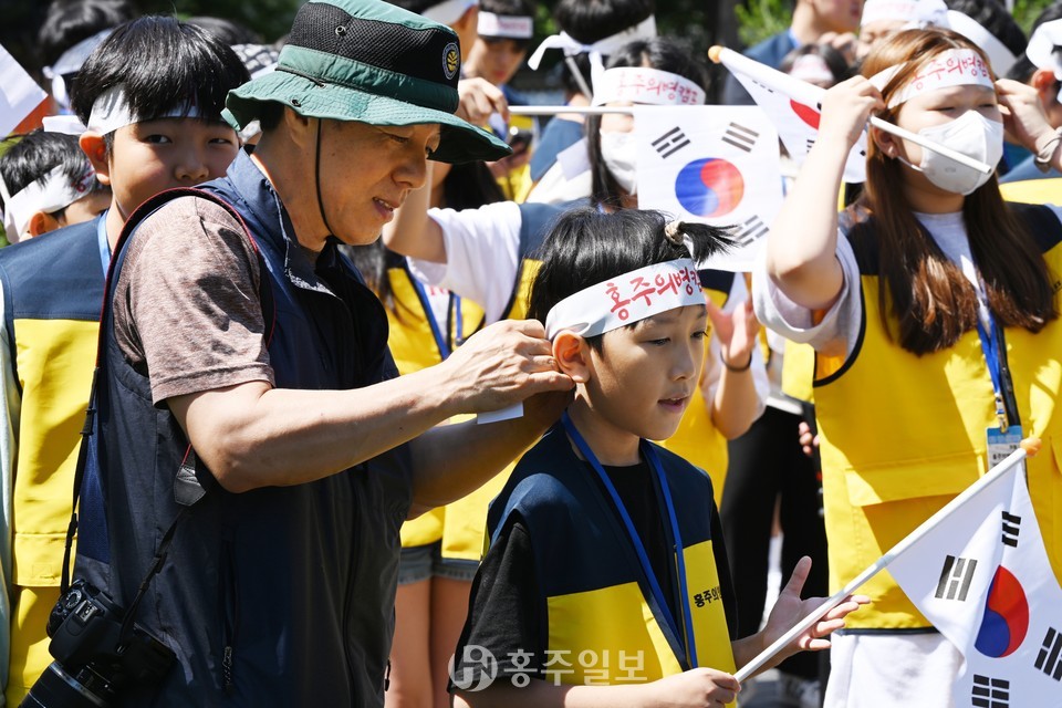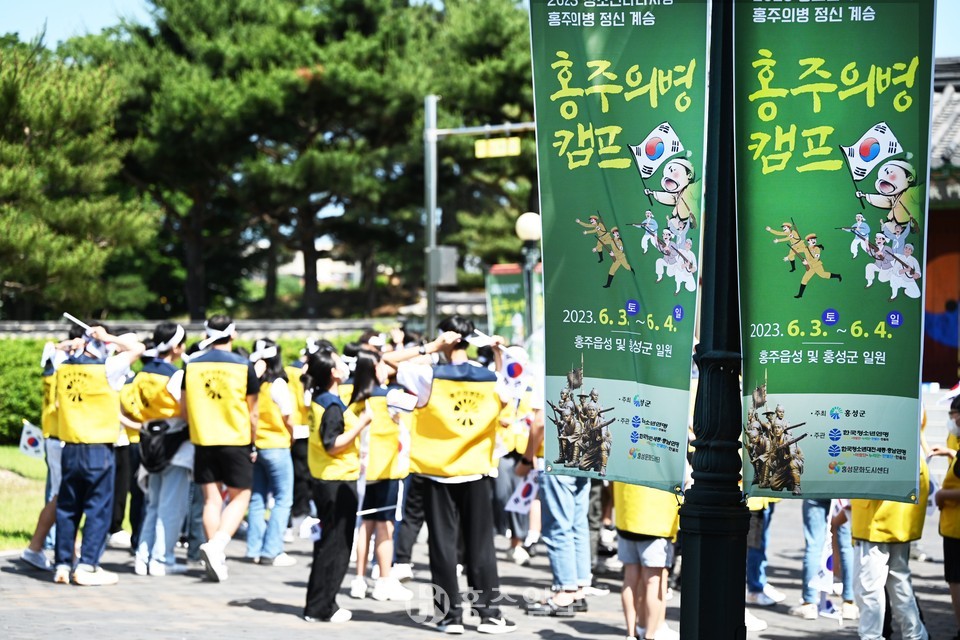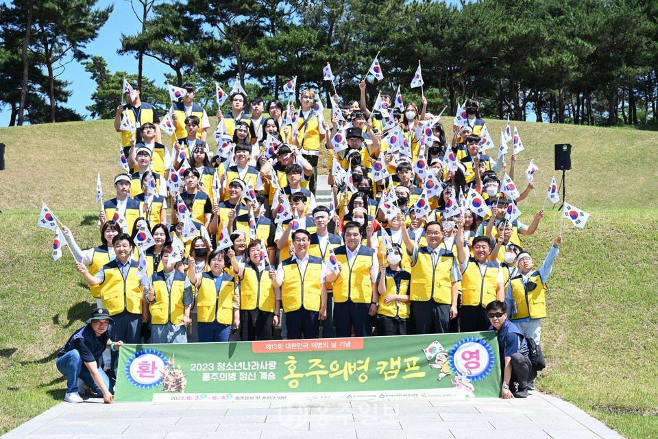 홍성군이 호국보훈의 달 6월을 맞이해 6월 1일 의병의 날, 6월 6일 현충일, 6·25전쟁 등을 기리기 위해 지난 3일 홍성 일대에서 100명의 청소년을 대상으로 나라사랑을 실천하는 ‘2023 나라사랑 홍주의병캠프’를 개최했다.<사진>