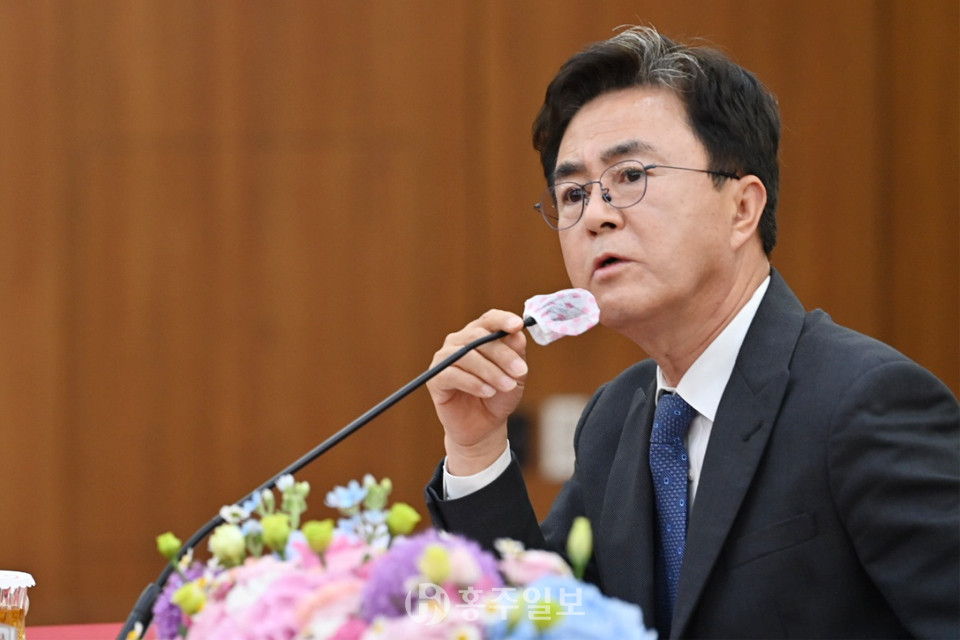 김태흠 충남도지사가 최근 정부의 예비타당성 조사에서 탈락한 서산공항 건설과 관련 문제가 없다는 입장을 다시 한 번 밝혔다.<사진>