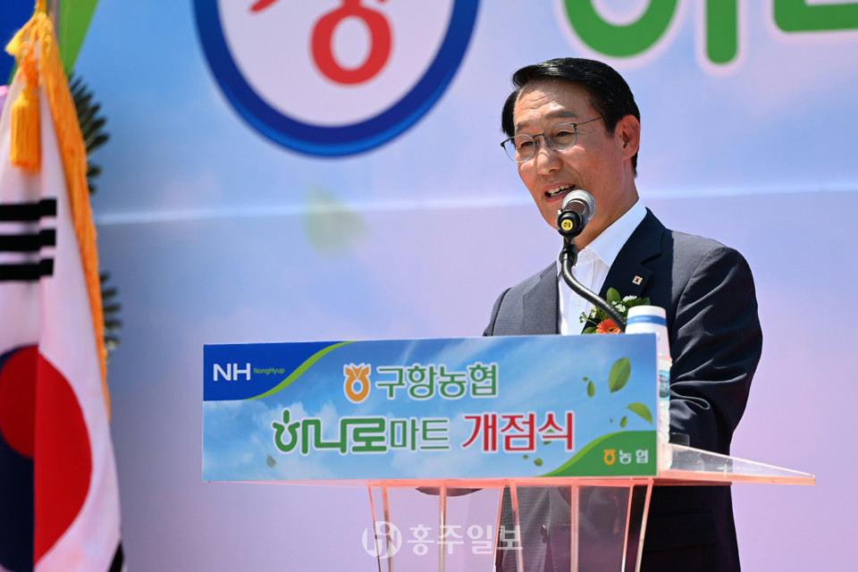 황규진 조합장은 기념사를 통해 “구항농협 하나로마트 개점을 축하해 주시기 위해 행사장을 찾아주신 농협 관계자와 군 관계자, 지역민 등 내·외빈께 진심으로 감사드린다”면서 “앞으로도 조합원을 비롯한 지역민들의 편의를 위한 사업들을 적극 추진해 나갈 것”이라고 밝혔다.