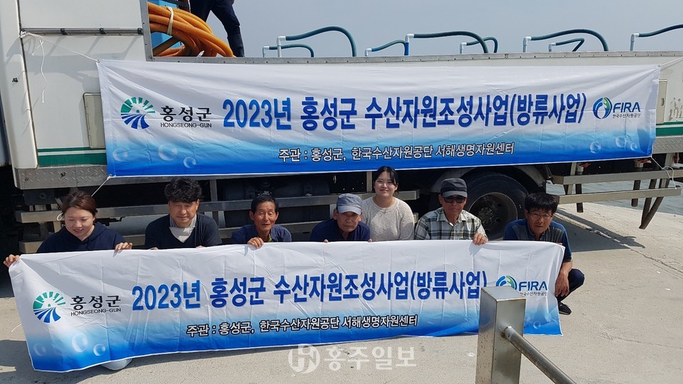 홍성군은 지난 19일 수산자원 조성을 통한 지역 어업인들의 소득증대 및 수산자원 증강을 위해 3억 원의 사업비를 투입해 꽃게 종자 44만 마리를 천수만 앞바다에 방류했다고 밝혔다.<사진>