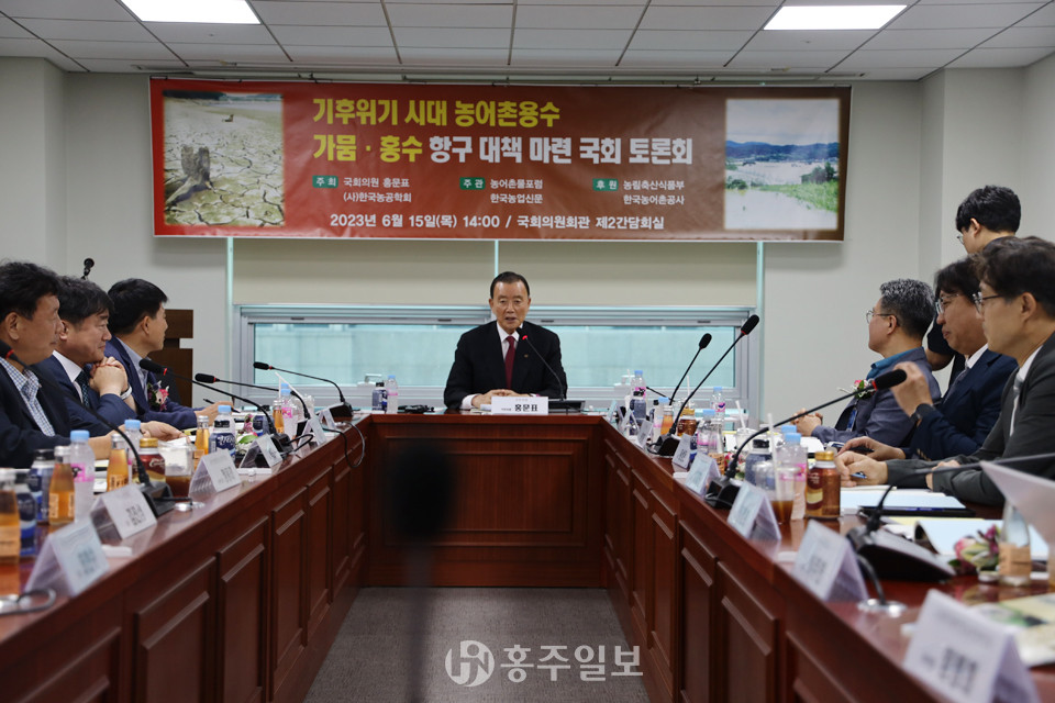 ‘기후위기 시대 농어촌용수 가뭄·홍수 항구대책 마련’ 국회토론회가 지난 15일 홍문표 국회의원(국민의힘, 홍성·예산) 주최로 국회의원회관 제2간담회실에서 성황리에 개최됐다.<사진>