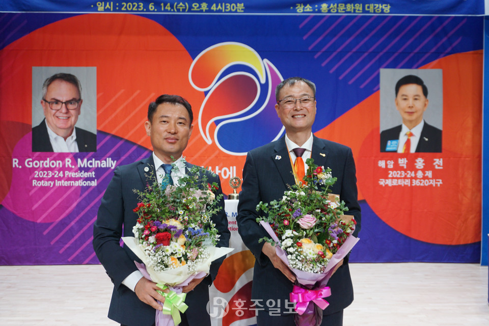 국제로타리 3620지구 홍성홍주로타리클럽(이임회장 청송 배수진·취임회장 대원 김수현)은 지난 14일 홍성문화원에서 제29·30대 회장 및 임원 이·취임식 행사를 개최했다.<사진>