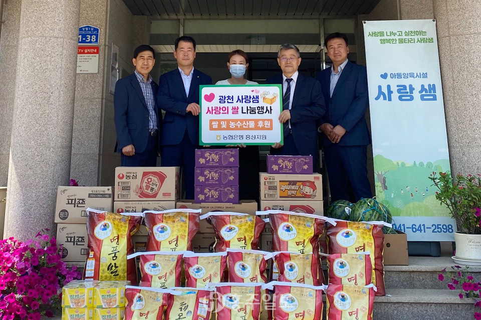 NH농협은행 홍성군지부(지부장 한만철)는 지난 13일 대전지방법원 홍성지원과 함께 광천읍 소재 아동양육시설 사랑샘에 쌀 등 농산물을 전달했다.<사진>