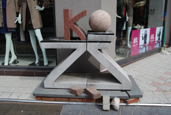 파손된 조형물 주변상가 상인들은 “아침에 나와 보면 커다란 돌덩이가 이리저리 굴러다녀 혹시라도 밤에 술 취한 사람들이 상가 유리창을 향해 던져버릴 것 같아 걱정스럽다”며 조형물 자체를 치워줄 것을 요구했다.