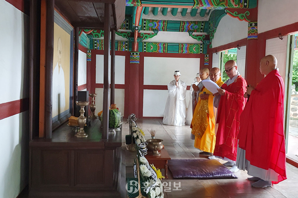 (사)독립투사만해한용운선생기념사업회(회장 이소용)가 26일 만해한용운선사생가지에서 ‘만해 한용운 선사 79주기 추모다례제’를 진행했다. 올해도 (사)독립투사만해한용운선생기념사업회는 선사가 입적한 음력 5월 9일에 맞춰 불교식 추모다례제를 지냈다.