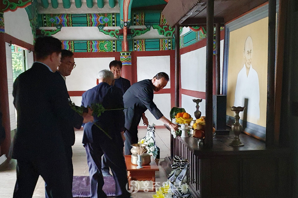 다례제는 △개식 △헌향, 독경, 다례 △국민의례 △추모사 △격려사 △축사 △헌화 순으로 진행됐으며, 홍문표 국회의원 축사도 있었다.<사진>