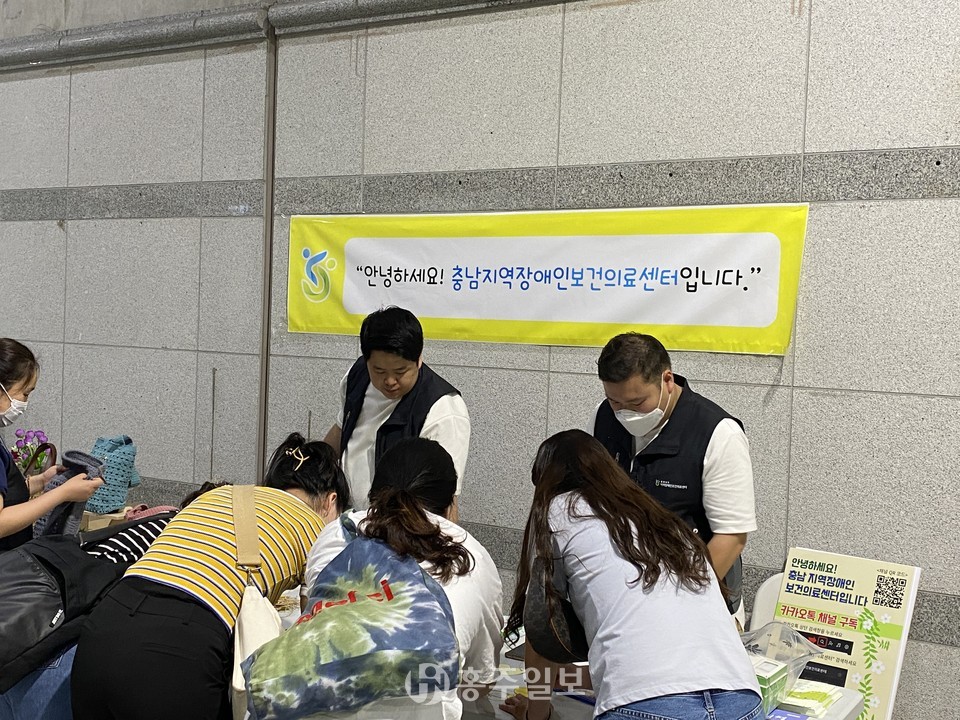 충청남도 홍성의료원(원장 김건식)에서 운영하는 충청남도 지역장애인보건의료센터는 장애인 건강보건관리사업 활성화를 위해 지난 23일 천안아산역에서 장애인식개선 캠페인 및 센터 사업 홍보를 진행했다.<사진>