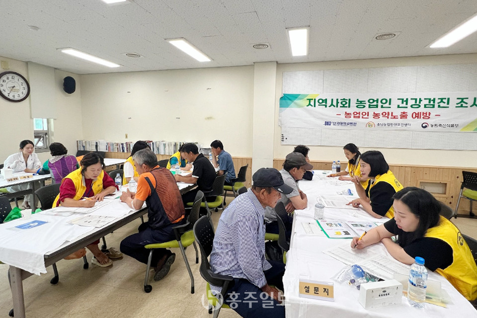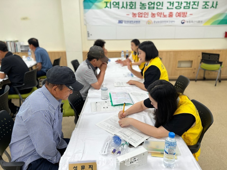 이번 농약노출정도검사는 ‘농업인 농약안전 예방기술 시범사업’의 일환으로 홍성군농업기술센터와 단국대학교병원 충남농업안전보건센터가 협력해 추진했으며, 검사항목은 크게 총 4항목으로 전문의 지도 아래 일반임상검진과 농약노출소변검사, 설문지검진, 의사검진 등 총 4항목으로 진행됐다.