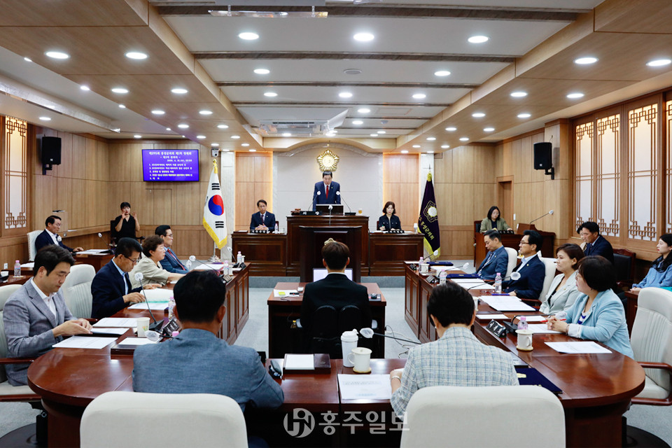 홍성군의회(의장 이선균)가 지난 21일 홍성군의회 본회의장에서 제295회 제1차 정례회 중 제2차 본회의에서 조례안 20건, 2022회계연도 예비비 지출 승인 및 예산·재무회계 결산안 등 일반안건을 처리하고 회기를 마무리했다.<사진>