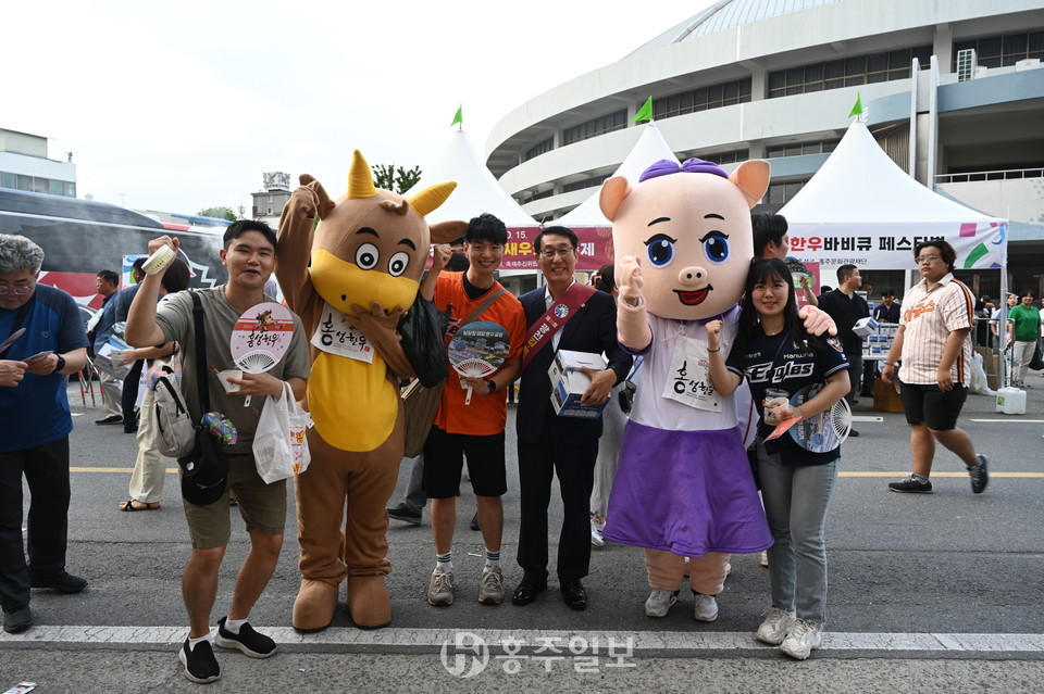 홍성군은 지난 27일을 ‘홍성군의 날’로 지정·운영, 대전 한화이글스파크 경기장을 찾는 관람객을 대상으로 홍성군 알리기에 나섰다.<사진>