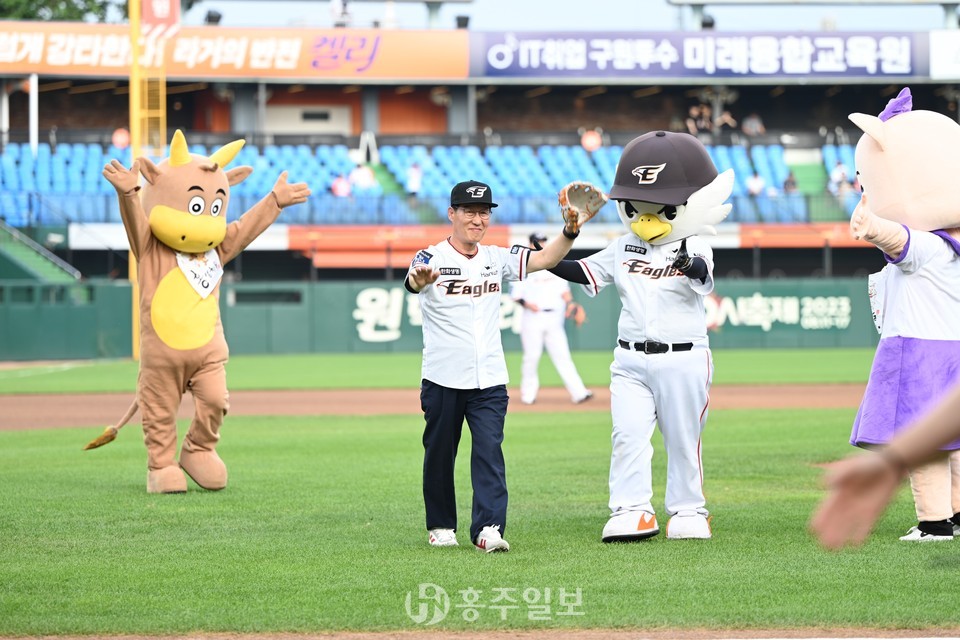 이날 경기는 이용록 홍성군수가 시구로, 이선균 홍성군의회 의장이 시타로 나섰으며, 결성초등학교 학생들이 경기전 애국가 제창에 나서 관람객들의 미소를 짓게 했다.