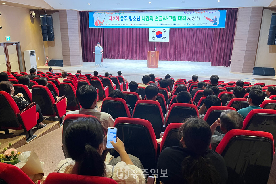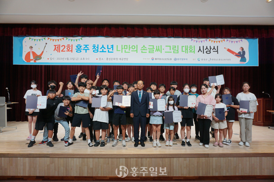 홍주청소년선도회(회장 이완희)와 ㈜홍주일보사(대표이사 한관우)가 공동 주최·주관한 ‘제2회 홍주 청소년 나만의 손글씨·그림 대회’ 시상식이 지난 23일 홍성문화원 대강당에서 개최됐다.<사진>