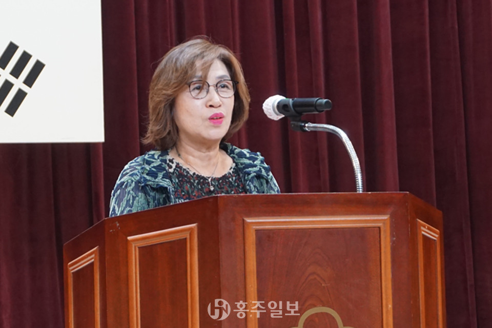 시상에 앞서 이번 대회의 공정한 심사를 맡은 이은련 한국미술협회 홍성지부장이 심사기준과 소감 등 심사총평을 발표했다.