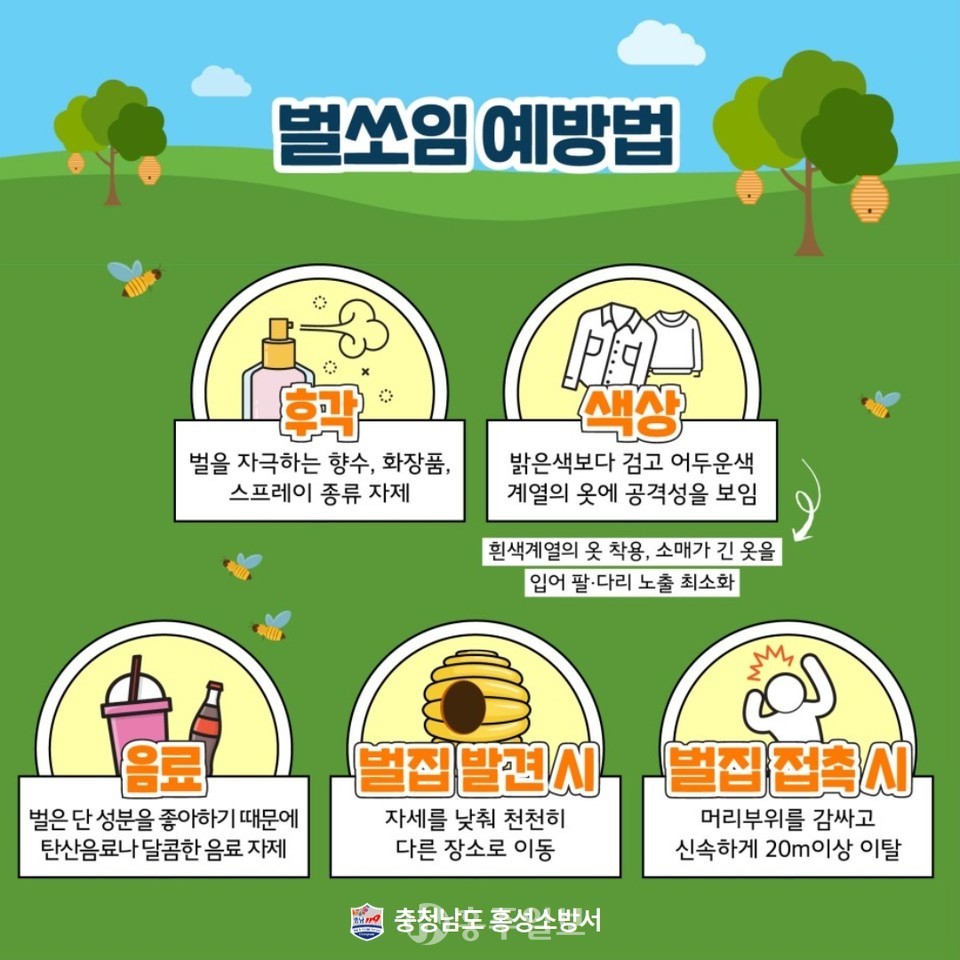 홍성소방서(서장 김경철)는 무더위 시작과 함께 벌들의 왕성한 활동시기에 따른 벌 쏘임 사고 주의를 당부했다.