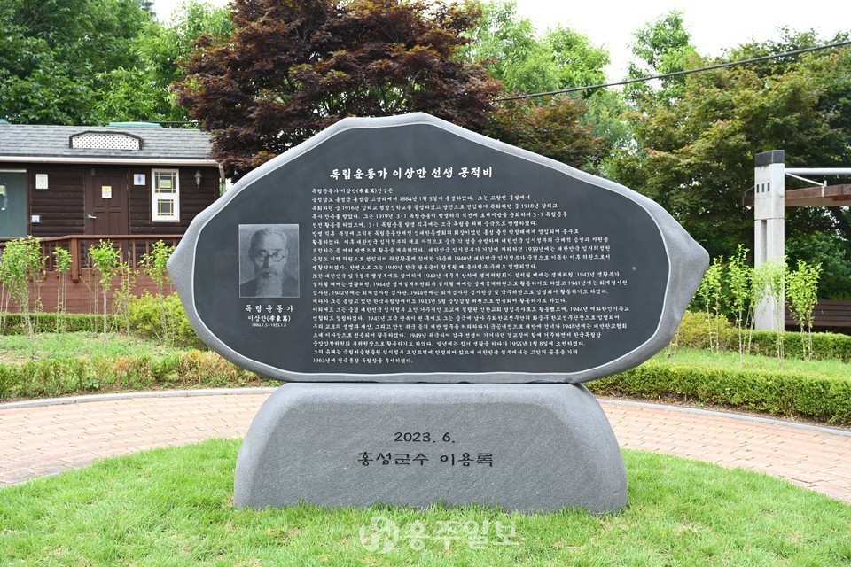 홍성군(군수 이용록)은 지난달 30일 조국의 자주 독립에 공헌한 이상만 선생을 기리기 위해 국가유공자 등을 모시고 독립유공자 이상만 선생 공적비 제막식을 개최했다.<사진>