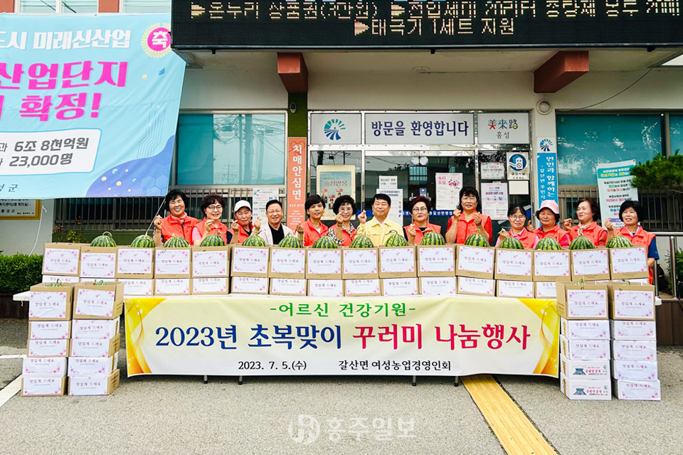 이번 행사는 다가오는 초복을 맞아 갈산면 29개 마을 경로당에 수박, 떡 등을 전달하고 어르신들의 안부를 살폈다.