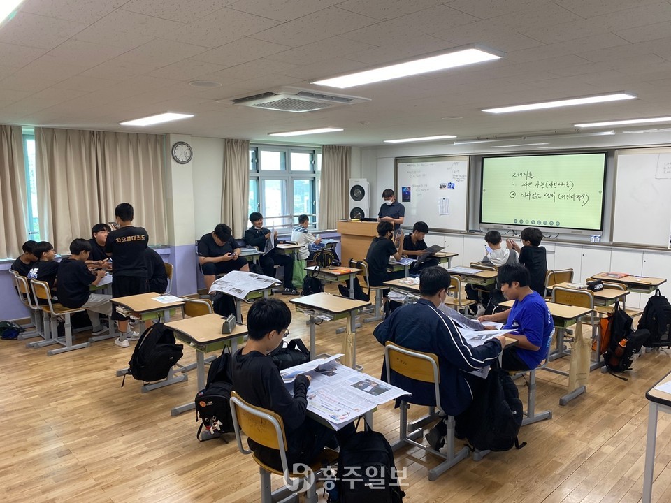 특히 올해는 홍성고등학교, 홍성여자고등학교, 홍주고등학교, 홍주중학교, 내포중학교 등 5개 학교에 홍주신문을 매주 배부했다. 그중 홍주중학교(교장 윤한석)는 김재범 국어교사를 중심으로 지난 한 학기 동안 1학년 학생을 대상으로 홍주신문을 활용한 수업을 진행했다.