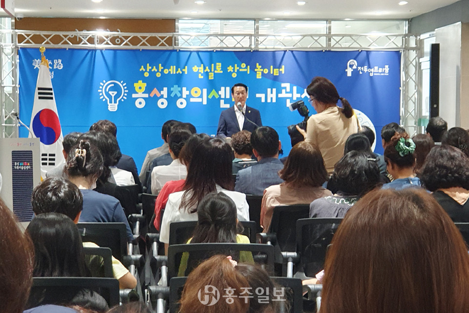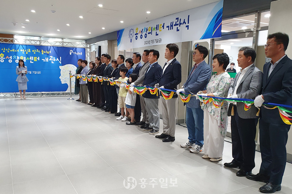 홍성군창의센터(센터장 백현주)는 7일 홍성가족어울림센터 3층에서 내·외빈 등 70여 명이 참석한 가운데 성황리에 개소식을 개최했다.<사진>