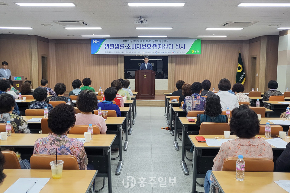 NH농협 홍성군지부(지부장 한만철)는 농업인의 생활법률문제 해결과 친환경 녹색소비 생활에 대한 내용으로 지난 7일 홍성농협 회의실에서 ‘농협 이동상담실’을 운영했다.<사진>