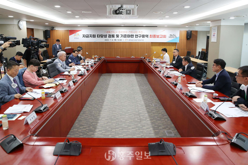 전형식 도 정무지사와 내포신도시 종합병원 건립 사업자인 명지의료재단 관계자, 홍성·예산군 관계자 등 10여 명이 참석한 가운데 연 이날 보고회는 용역 최종보고, 토론 등의 순으로 진행됐다.