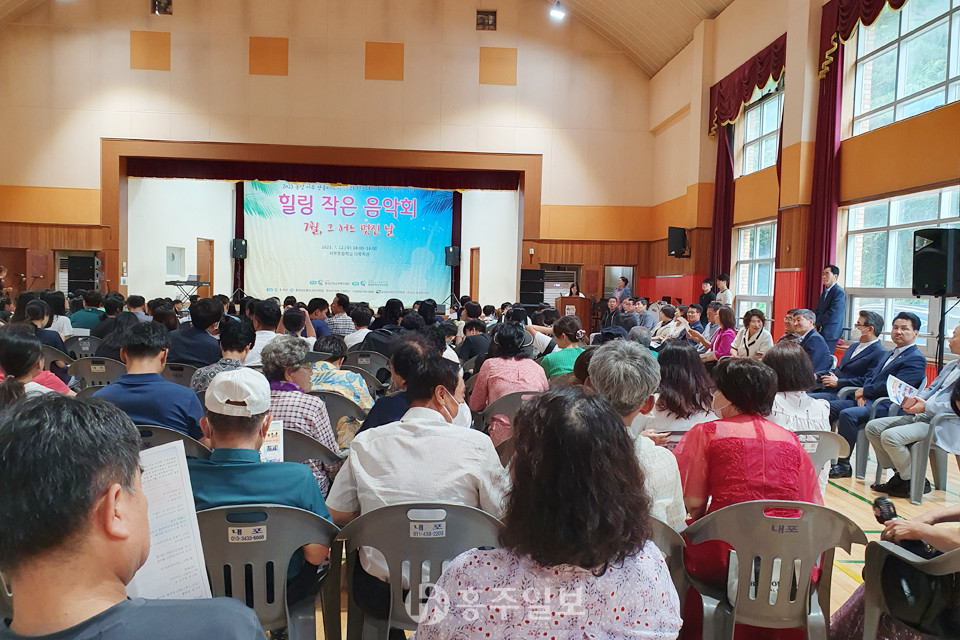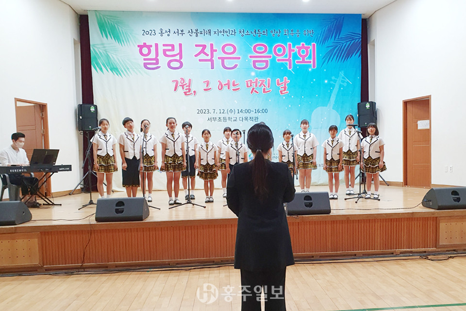지난 4월 2일 서부면에 발생한 산불로 피해를 입은 주민들에게 홍성청소년수련관(관장 피기용)은 서부초등학교 다목적관(강당)에서 12일 200여 명이 참석한 가운데 홍성 산불피해 지역민 일상회복을 위한 힐링 음악회를 개최했다.<사진>