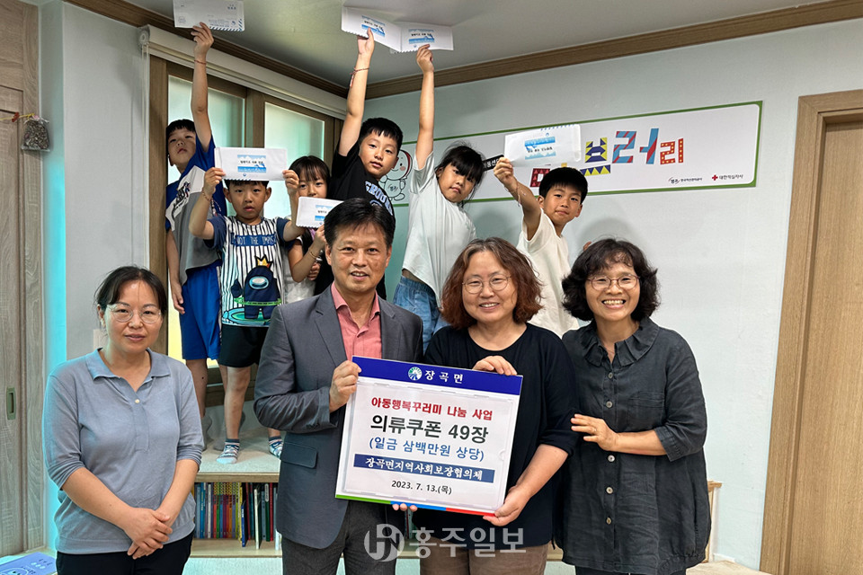 아동행복쿠폰 나눔사업은 충남도사회복지공동모금회의 지정기탁금으로 추진하는 사업으로 장곡신나는지역아동센터, 장곡어린이집 등 아동시설에 지역 의류점의 의류 쿠폰을 전달하는 사업이다.