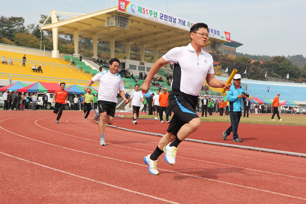 홍성군민체육대회가 지난 13일 홍주종합경기장에서 성황리에 개최된 가운데, 각 읍면별 계주가 군민들의 뜨거운 응원 속에 진행됐다. 사진은 계주를 뛰고 있는 이상현 금마면장. 저작권자 © 홍주일보 무단전재 및 재배포 금지 김혜동 기자 다른기사 보기 페이스북 카카오톡 URL복사 기사공유하기
