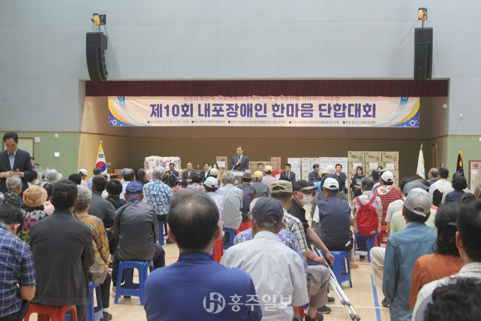 (사)충남지체장애인협회 홍성군지회(지회장 복천규)가 주최하는 ‘제10회 내포장애인 한마음 단합대회’가 지난 21일 오전 11시 홍성군장애인스포츠센터(센터장 박종도)에서 홍성·예산 장애인의 화합과 공감의 장이 돼 단합대회를 성황리에 개최했다.<사진>