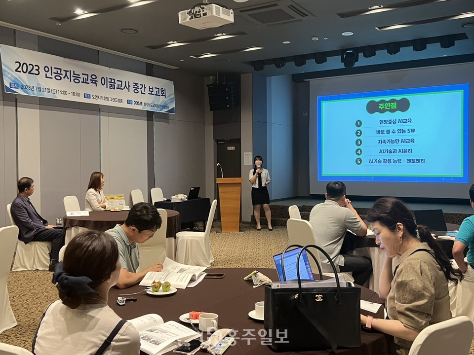 충청남도교육청연구정보원(원장 김영숙)은 지난 21일 ‘2023 인공지능교육 이끎교사 중간 보고회’를 실시했다.<사진>